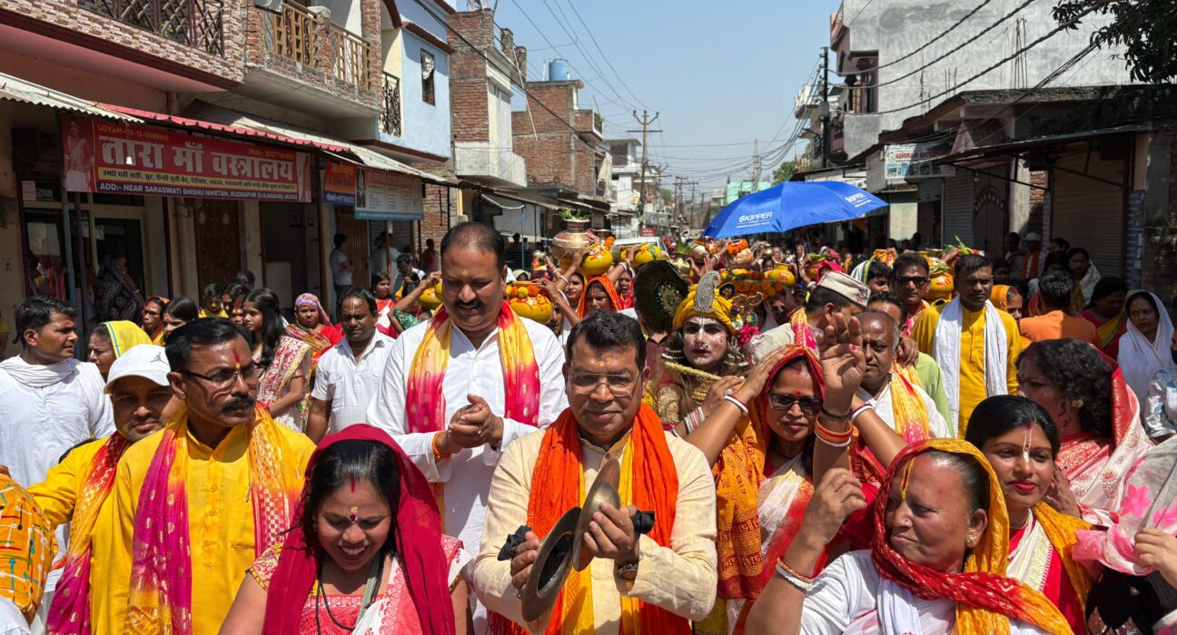 रुद्रपुर। (लोक निर्णय) ट्रांजिट कैम्प श्री राधा गोविन्द मन्दिर में 15 से 19 अप्रैल तक आयोजित होने वाले श्री श्री अखण्ड सार्वजनिक महानाम सकीर्तन से पूर्व आज ट्रांजिट कैम्प बाजार मे भव्य दिव्य कलश यात्रा निकाली गई। विधायक शिव अरोरा हजारों भक्तो संग पैदल कृष्ण नाम की धुन पर झूमते हुए कलश यात्रा मे शामिल हुए।मंदिर में प्रतिवर्ष बड़े स्तर पर अखण्ड नाम कीर्तन आयोजित होता है। इसमें राजस्थान, आनंदखेड़ा, ओडिशा, महाराष्ट्र, लखीमपुर खीरी, मलकानगिरी अखण्ड नाम संप्रदाय की टीम शामिल होंगी जो मुख्य आकर्षण का केंद्र रहते है । विधायक शिव ने कहा कि उनका प्रतिवर्ष राधा गोविंद मंदिर में आना होता है कृष्ण भक्ति पर आधारित यह संकीर्तन बंगाली समुदाय में बहुत पवित्र व दिव्या माना जाता है।जिसकी आस्था को देखते हुए बहुत दूर दराज से लोग कीर्तन का श्रवण करने आते हैं।इस दौरान बंगली महासभा अध्यक्ष राजकुमार साह, बंगाली समिति अध्यक्ष दिलीप अधिकारी, मंडल अध्यक्ष धीरेश गुप्ता, जगदीश कर्मकार, कमेटी अध्यक्ष पिंटू राय, सचिव शुभम कर्मकार, केना मंडल, कृष्णापद विश्वास, परितोष सरकार, अमित सरकार, बाबू सरदार, परिमल राय, अमलेंदु ढाली, शंकर विश्वास, सुबीर दास, सूरज दास, अंकित दास, शुभम मंडल, संजीव मंडल, विश्वजीत मंडल, विपलव हलदार, गुड्डू सरकार, राजेश सरकार आदि लोग मौजूद रहें।