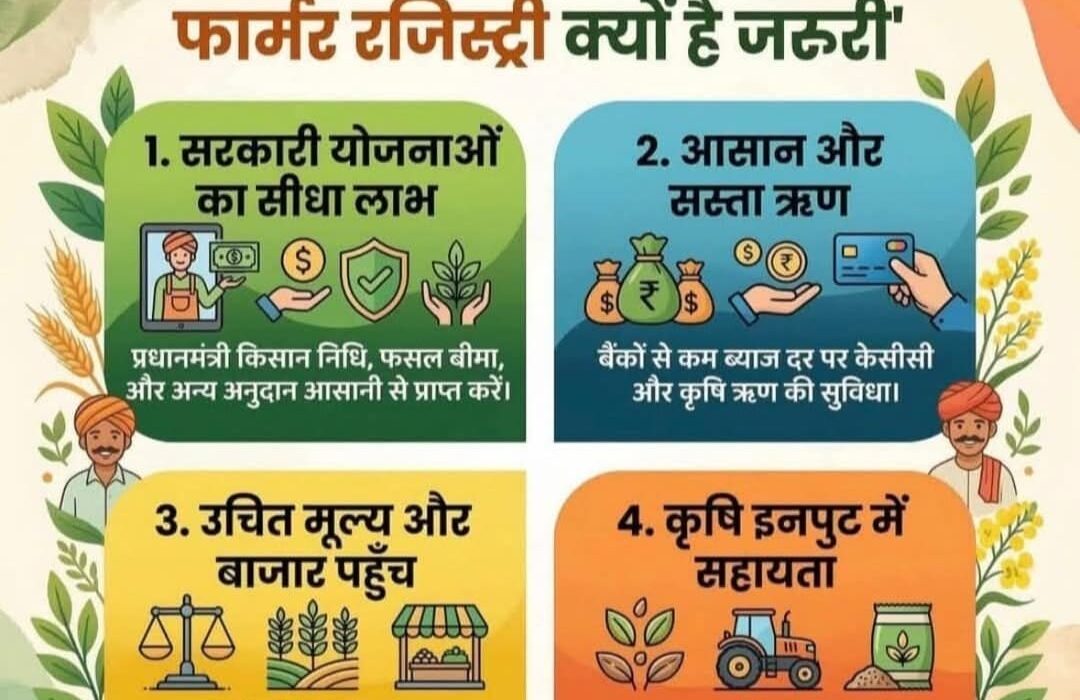रुद्रपुर।(लोक निर्णय) किसान लोग अपनी फार्मर डिजिटल आइडी ( फार्मर रजिस्ट्री) तत्काल तैयार करा लीजिए। राज्य सरकार एवं भारत सरकार की विभिन्न योजनाओ (उर्वरक सहित) का लाभ फार्मर डिजिटल आइडी ( फार्मर रजिस्ट्री) के आधार पर ही मिलेगा। इसलिए आप तत्काल अपनी आई डी तैयार करा लीजिए। फार्मर डिजिटल आइडी ( फार्मर रजिस्ट्री) के लिए कृषि विभाग/उधान विभाग/गन्ना विभाग/मत्स्य विभाग/डेयरी विकास विभाग/ग्राम्य विकास विभाग/पंचायत राज विभाग के कर्मचारीगण दिनांक 15/04/2026 से 30/04/2026 तक आपके गाॅव/आपकी पंचायत में कैम्प करेंगे। आप फार्मर डिजिटल आइडी ( फार्मर रजिस्ट्री) जन सेवा केंद्र (सी एच सी ) के माध्यम से भी करा सकते हैं। इसी के साथ आपसे अनुरोध हैं कि आप उपरोक्त जानकारी अपने स्तर से अन्य किसानों को भी उपलब्ध कराए जिससे जनपद के अधिक से अधिक कृषक लाभान्वित हो सके। जनपद में फार्मर डिजिटल आइडी ( फार्मर रजिस्ट्री)तैयार कराने के लिए 172 कर्मचारियों को आपरेटर नियुक्त किया गया हैं। तहसील स्तर पर एक अधिकारी को नोडल नामित किया गया हैं। जनपद स्तर पर अपर जिला अधिकारी(वित्त एवं राजस्व)/ मुख्य विकास अधिकारी प्रतिदिन की प्रगति की समीक्षा कर रहे हैं। इस सम्बन्ध किसी भी प्रकार की समस्या होने पर कृषि विभाग एवं राजस्व विभाग के कर्मचारीगण एवं अधिकारीगण से संपर्क कर सकते हैं। मुख्य कृषि अधिकारी उधम सिंह नगर।