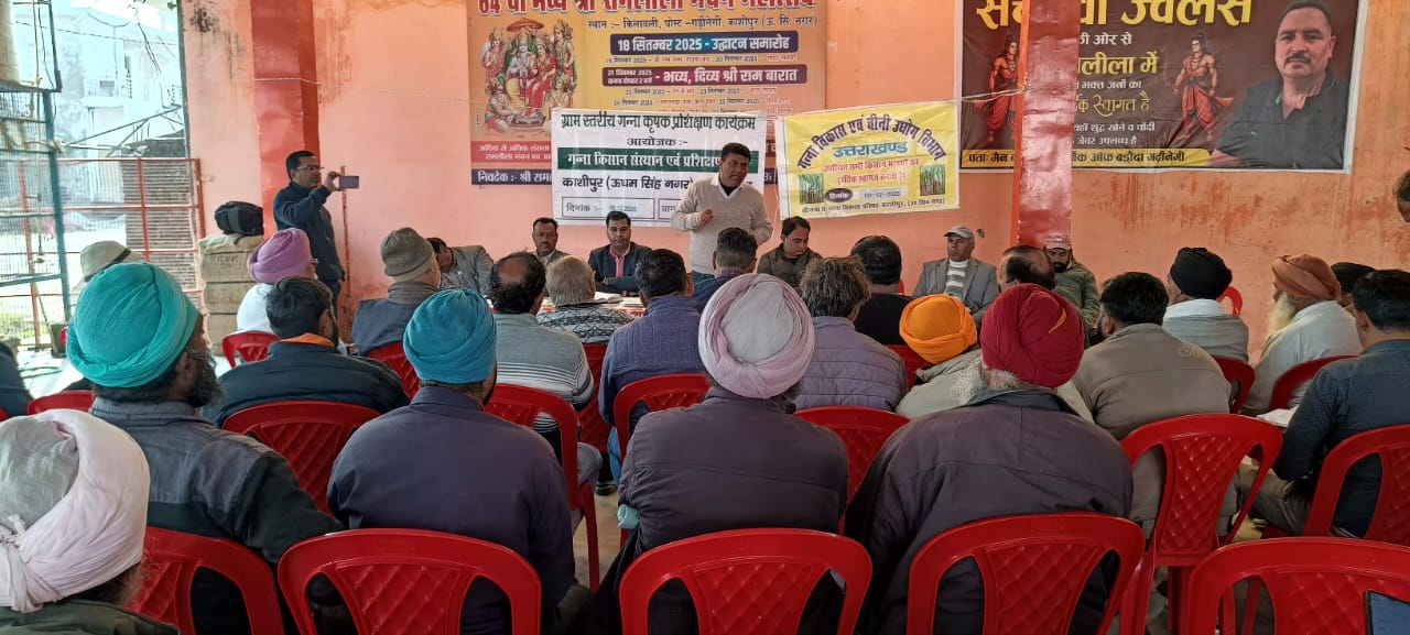 काशीपुर।गन्ना किसान संस्थान एवं प्रशिक्षण केंद्र काशीपुर द्वारा गन्ना विकास परिषद काशीपुर परिक्षेत्र के ग्राम किलावली में हुई किसान गोष्ठी में खेती की जानकारी दी गई। गन्ना विभाग के प्रचार एवं जनसंपर्क अधिकारी नीलेश कुमार ने गन्ने की बुवाई की जानकारी दी। बताया कि गन्ने की कृषि में गहराई तथा दूरी का बहुत महत्व है। अतः किसान बंधु इसका पालन करें। गहराई में गुल खोलकर गन्ने की बुवाई करें तथा दूरी बनाए रखें।जिससे कि गन्ने को फैलाव में मदद मिलेगी। शरद कालीन गन्ना बुवाई का समय है। गन्ना किसान अपनी खेत की अच्छी सी तैयारी कर के ही गन्ने की बुवाई प्रारंभ करें।जिन गन्ना किसानों को शरद कालीन गन्ना की बुवाई करनी है, वह उत्तम बीज का चुनाव करें। प्रत्येक गन्ना कृषक अपनी खेत का निरीक्षण करें तथा जो भी बीमारी के लक्षण उसमें पाए जाए उसका फोटो लेकर गन्ना शोध केंद्र के वैज्ञानिकों के को प्रेषित करें। जिससे कि उसे फोन पर ही तत्काल सहायता उपलब्ध कर दी जाएगी।प्रत्येक कृषक को नवीनतम तकनीक के आधार पर गन्ना की कृषि की जानी चाहिए।हमें अपनी भूमि की जांच करानी चाहिए। भूमि में 16 प्रकार के सूक्ष्म पोषक तत्व पाए जाते हैं ! अतः जांच करने पर हमें पता चलेगा कि हमारी भूमि में कौन सी तत्व की कमी है तथा उसकी पूर्ति करने से हमारे जमीन की गुणवत्ता में वृद्धि होगी।गन्ने की फसल में लगने वाली तरह-तरह के बीमारियों तथा उसमें प्रयोग की जाने वाली दवाओं तथा उनको गन्ने की वैज्ञानिक विधि से कृषि कैसे करें के बारे में बताया गया। गन्ना अनुसंधान केंद्र के वैज्ञानिक अधिकारियों ने बताया गया कि वर्तमान में 15023. , 13235, 14201 जैसी उन्नतशील प्रजातियां हैं।जिनको गना कृषकों को प्रोत्साहित करना चाहिए! वर्तमान में 0238 रेड रोड की चपेट में आ गई है अतः कृषक बंधुओ से अनुरोध है कि इस प्रजाति के गन्ने की बुवाई बिल्कुल भी न करें है। अतः कृषकों को चाहिए कि वह इसका रिप्लेस करें। वैज्ञानिकों द्वारा कीट एवं रोग प्रबंधन के विषय में भी विस्तार से जानकारी प्रदान की गई। बैठक में गन्ना अनुसंधान केंद्र के वैज्ञानिक श्री संजय कुमार, प्रमोद कुमार आदि मौजूद थे।