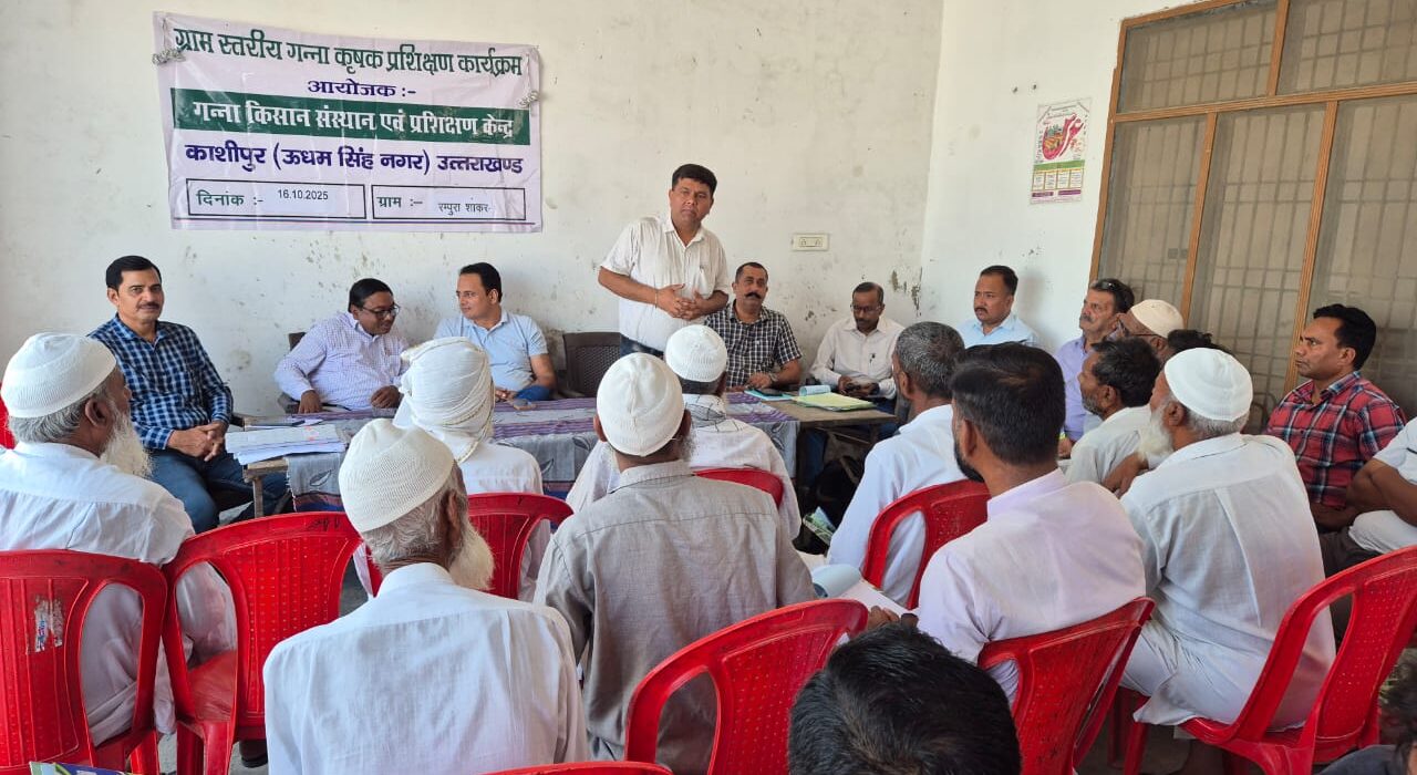 बाजपुर:गन्ना किसान संस्थान एवं प्रशिक्षण केंद्र काशीपुर की ओर से बाजपुर के ग्राम रमपुरा शाकार में गुरुवार जो आयोजित गोष्ठी में खेती की जानकारी दी गई। गन्ना विभाग के प्रचार एवं जनसंपर्क अधिकारी नीलेश कुमार ने सट्टा नीति के फायदे की जानकारी दी। शरद कालीन गन्ना बुवाई का समय आ गया है। इसलिए किसान खेत की अच्छी सी तैयारी कर लें और उन्नतशील बीज की बुआई करें।खेत में बीमारी के लक्षण दिखे तो उसकी फोटो लेकर गन्ना शोध केंद्र के वैज्ञानिकों के भेजें। जिससे फसल को बचाया जा सके। उन्होंने मृदा और गन्ना बीज के बारे में बताया।गोष्ठी का उद्देश्य गन्ना उत्पादन को बढ़ाना है। जिससे किसान को अधिक से अधिक आर्थिक लाभ मिल सके। बीमारियों तथा उसमें प्रयोग की जाने वाली दवाओं तथा उनको गन्ने की वैज्ञानिक विधि से कृषि कैसे करें ।जिससे की प्रति हेक्टेयर उत्पादकता बढ़े,इसकी जानकारी कृषकों को प्रदान करना है। वैज्ञानिक अधिकारियों ने बताया कि वर्तमान में 15023., 13235, 14201 जैसी उन्नतशील प्रजातियां हैं।जिनको गना कृषकों को प्रोत्साहित करना चाहिए। वर्तमान में 0238 रेड रोड की चपेट में आ गई है । इस प्रजाति के गन्ने की बुवाई बिल्कुल भी न करें है। बैठक में गन्ना अनुसंधान केंद्र के वैज्ञानिक संजय कुमार,प्रमोद कुमार सहित गन्ना विभाग के अधिकारी तथा कर्मचारी ,बाजपुर चीनी मिल प्रतिनिधि सहित बड़ी संख्या में प्रगतिशील कृषक मौजूद रहे।