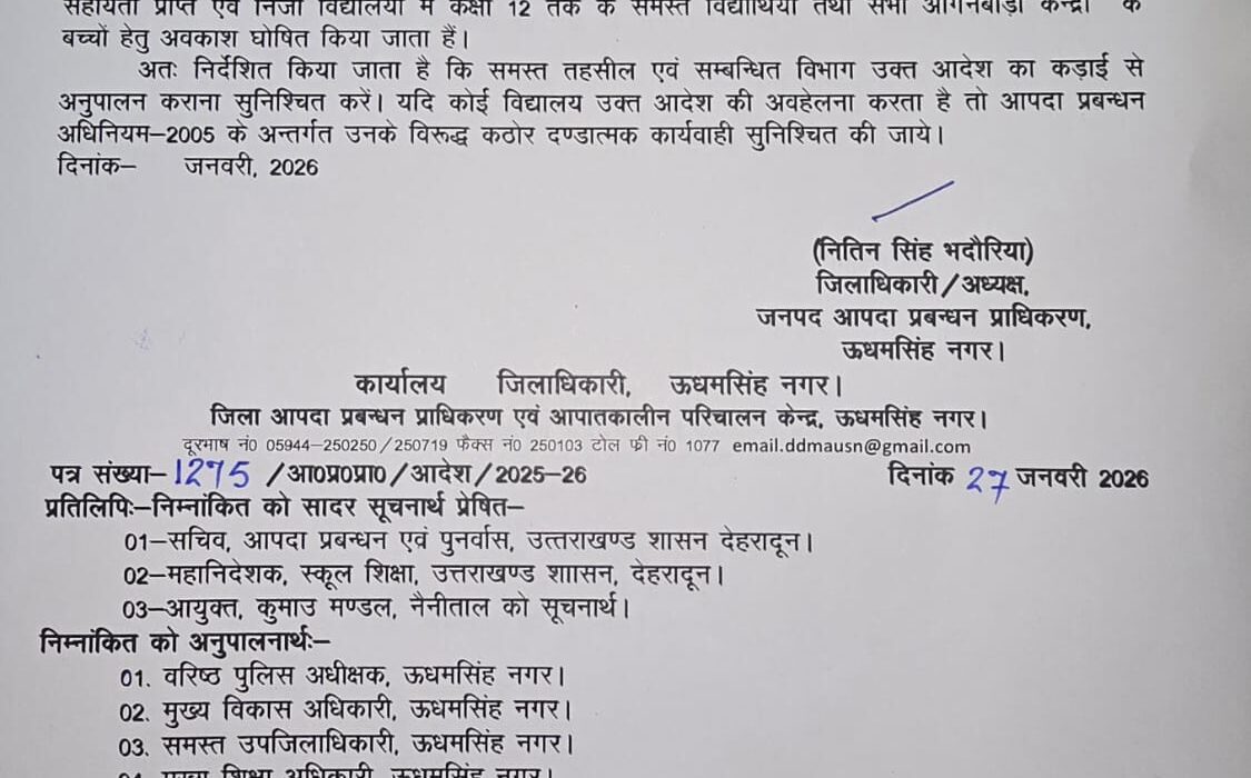 तराई में ऑरेंज अलर्ट,बुधवार को स्कूलों में अवकाश