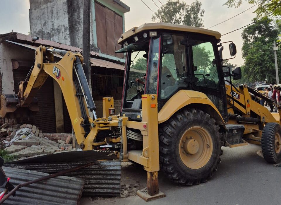 नकल आरोपित खालिद की अवैध भूमि पर बनी दुकान पर धाकड़ धामी का चला बुलडोजर