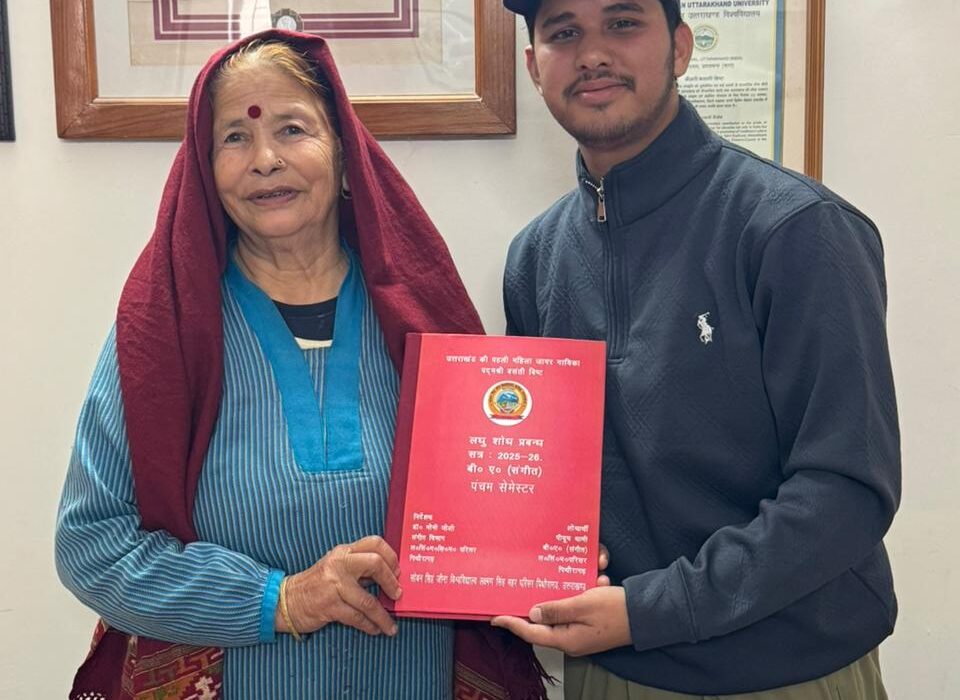 रुद्रपुर।उत्तराखंड की लोक संस्कृति और पारंपरिक गायन विधा ‘जागर को नई ऊंचाइयों पर ले जाने वाली पहली महिला जागर गायिका पद्मश्री बसंती बिष्ट के जीवन और संघर्षों को अब युवा पीढ़ी शोध के माध्यम से सहेज रही है। इसी क्रम में, युवा कलाकार और शोधार्थी पीयूष धामी ने बसंती बिष्ट के जीवन पर आधारित एक विस्तृत लघु शोध तैयार कर उन्हें भेंट किया।पीयूष धामी द्वारा तैयार किए गए इस लघु शोध में बसंती बिष्ट के बचपन, उनके गायन के क्षेत्र में आने की चुनौतियों और जागर विधा को अंतरराष्ट्रीय स्तर पर पहचान दिलाने के सफर को बखूबी दर्शाया गया है। पीयूष ने बताया कि इस शोध का मुख्य उद्देश्य उत्तराखंड की समृद्ध लोक परंपराओं को आने वाली पीढ़ी के लिए दस्तावेजी रूप में सुरक्षित करना है। पद्मश्री बसंती बिष्ट ने पीयूष के प्रयासों की सराहना करते हुए कहा कि, “जब युवा अपनी जड़ों और लोक कलाओं पर शोध करते हैं, तभी हमारी संस्कृति जीवित रहती है।” उन्होंने पीयूष को भविष्य के लिए आशीर्वाद देते हुए उनके कार्यों की प्रशंसा की।