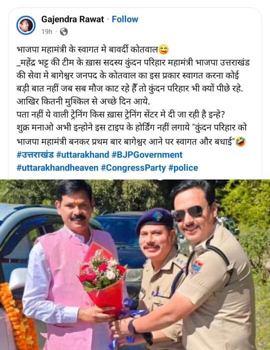 रुद्रपुर: बागेश्वर में भाजपा के एक प्रदेश पदाधिकारी का कोतवाल ने फूल का गुलदस्ता देकर स्वागत किया तो यह इंटरनेट मीडिया पर वायरल हो गया।