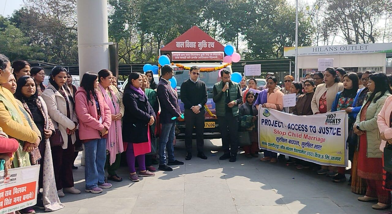 रुद्रपुर।इंस्टिट्यूट ऑफ़ सोशल डेवलपमेंट (आईएसडी)द्वारा बाल विवाह मुक्ति रथ ऊधम सिंह नगर में आज से निकाली गई। जो आठ आठ मार्च तक एक्सेस टू जस्टिस कार्यक्रम के तहत जस्ट राइट फॉर चिल्ड्रन एलायंस के सहयोग से किया जा रहा है ।विकास भवन परिसर से बाल विवाह मुक्ति रथ को विधायक रुद्रपुर शिव अरोड़ा एवं मुख्य विकास अधिकारी देवेश शाशनी ने हरी झंडी दिखाकर रवाना किया। विधायक ने जिले के 10 बाल विकास परियोजना अधिकारी 35 सुपरवाइजर एवं 30 आंगनबाड़ी कार्यकर्ताओं को बाल विवाह मुक्त ऊधम सिंह नगर बनाने की शपथ दिलाई ।साथ ही सभी लोगों से सक्रिय सहयोग प्रदान करने का आवाह्न किया । उन्होंने कहा कि बाल विवाह एक अभिशाप है हमें अपने समाज से इसे समाप्त कर आत्मनिर्भर भारत एवं सशक्त भारत की नींव को मजबूत करने में योगदान देना है । मुख्य विकास अधिकारी ने बताया कि बाल विवाह अत्यंत संवेदनशील विषय है जिस पर जिला प्रोबेशन द्वारा कार्य किया जा रहा है उन्होंने कहा कि 1098 पर बाल विवाह की शिकायतें प्राप्त होती हैं ।इन संवेदनशील क्षेत्रों में आईईसी के माध्यम से जन जागरूकता का कार्य किया जा रहा है इस कार्य में जनप्रतिनिधियों का सहयोग भी अत्यंत आवश्यक है।डॉक्टर अमित श्रीवास्तव ने बताया कि बाल विवाह मुक्ति रथ जनपद उधम सिंह नगर के प्रत्येक विकासखंड मुख्यालय, सरकारी अस्पताल, तहसील एवं संवेदनशील क्षेत्रों में जाएगी तथा जन जागरूकता कर बाल विवाह के विरुद्ध शपथ दिलाई जाएगी। जिला कार्यक्रम अधिकारी मुकुल चौधरी ने बाल विकास की टीम को सक्रिय सहयोग करने का संदेश दिया जिला प्रोबेशन अधिकारी व्योमा जैन ने बाल विवाह के रोकथाम में प्रत्येक स्तर पर सहयोग कर उधम सिंह नगर को बाल विवाह मुक्त करने का संकल्प लिया । इस अवसर पर बाल विकास परियोजना अधिकारी आशा नेगी बीना भंडारी, रेनू यादव, परियोजना निदेशक बिंदुवासिनी, संगीता ,बिंद्रा तिवारी ,शर्मिला, अजय ,रवींद्र वर्मा इत्यादि उपस्थित हुए ।