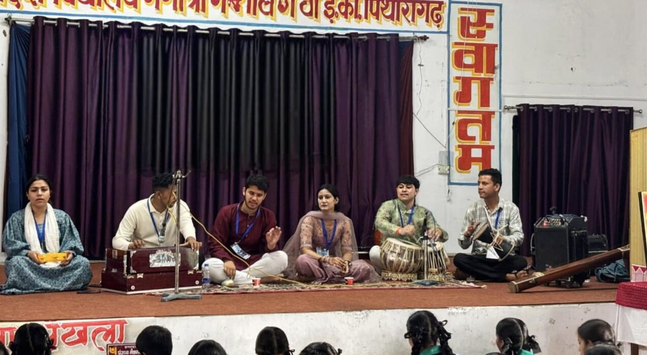 पिथौरागढ़।गंगोत्री गर्बीयाल राजकीय बालिका इंटर कॉलेज पिथौरागढ़ में आज लोक विरासत जनजाति एवं लोक कला समिति द्वारा आयोजित पारंपरिक लोकगीत कार्यशाला में पीयूष धामी व उनके साथियों द्वारा छात्र छात्राओं को उत्तराखंड की विलुप्त हो रही गायन शैली बाजूबंद, झुमैलो आदि का निःशुल्क प्रशिक्षण दिया गया। पीयूष धामी ने बताया कि इन लोक गायन विधाओं का संरक्षण करना और नई पीढ़ी तक इसे पहुंचा बहुत ज़रूरी है। इस कार्यक्रम में समिति की कोषाध्यक्ष स्मृति भट्ट, कविता पंत, लक्ष्मी तिवारी, आयुष कलकुडिया आदि उपस्थित थे।