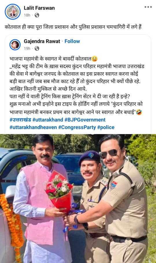 उत्तराखंड बागेश्वर में गुलदस्ते को लेकर क्यों मचा बवाल ? रुद्रपुर: बागेश्वर में भाजपा के एक प्रदेश पदाधिकारी का कोतवाल ने फूल का गुलदस्ता देकर स्वागत किया तो यह इंटरनेट... BY locnirnay@gmail.com October 10, 2025 0 Comment